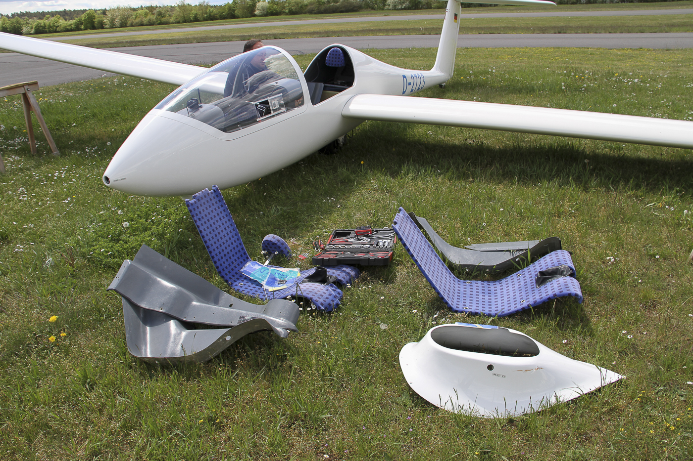 Flugplatz Bad Neustadt - Grasberg JNP am 14.5.2021, Einzelteile vom Twin