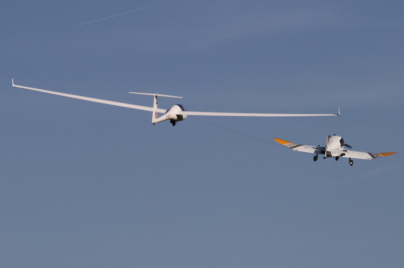 Flugbetrieb am 7.5.2011 auf dem Grasberg, abfliegender Flugzeugschlepp