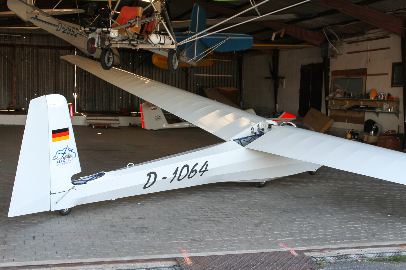 Flugplatz Bad Neustadt, JNP am 05.04.2025, Ka 8 in der Halle während der Prüfung