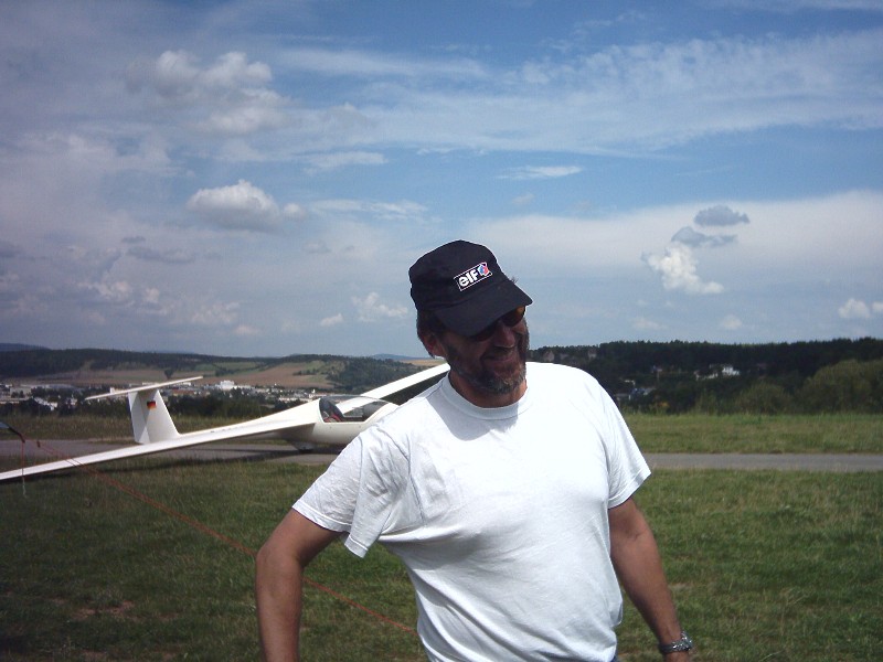 Thomas am Segelflugstart (mit Notfallmütze)