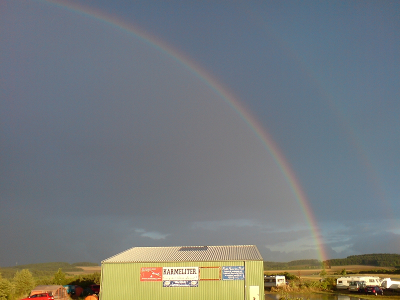 Regenbogen über der grünen Halle