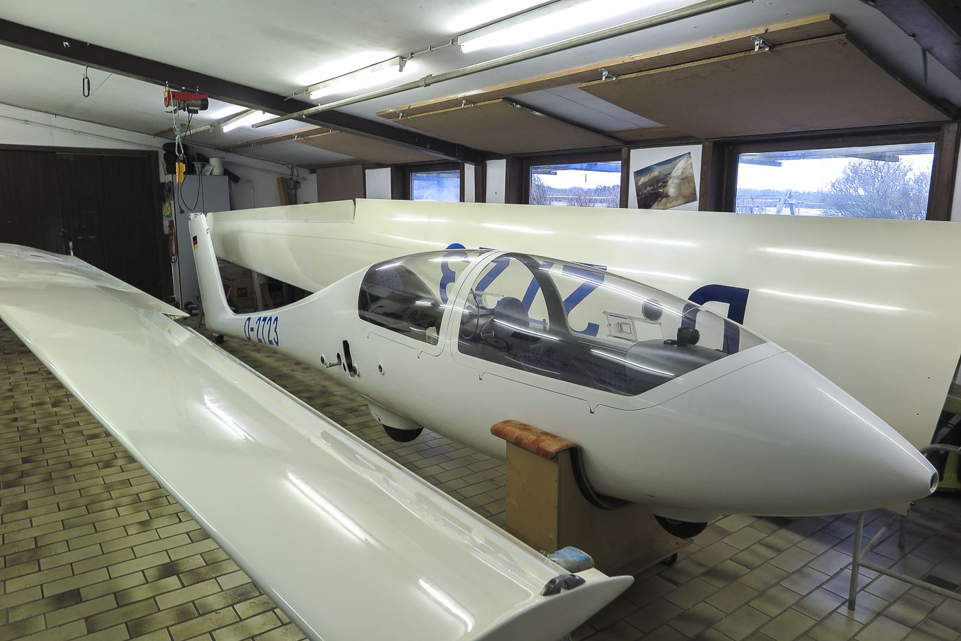 Der Twin zur Pflege und Vorbereitung der JNP in der Segelflugwerkstatt auf dem Flugplatz Bad Neustadt.