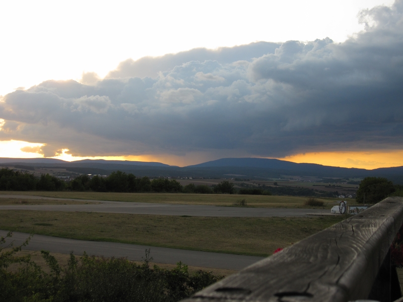 Sonnenuntergang EDFD, Blick vom Balkon zum Kreuzberg