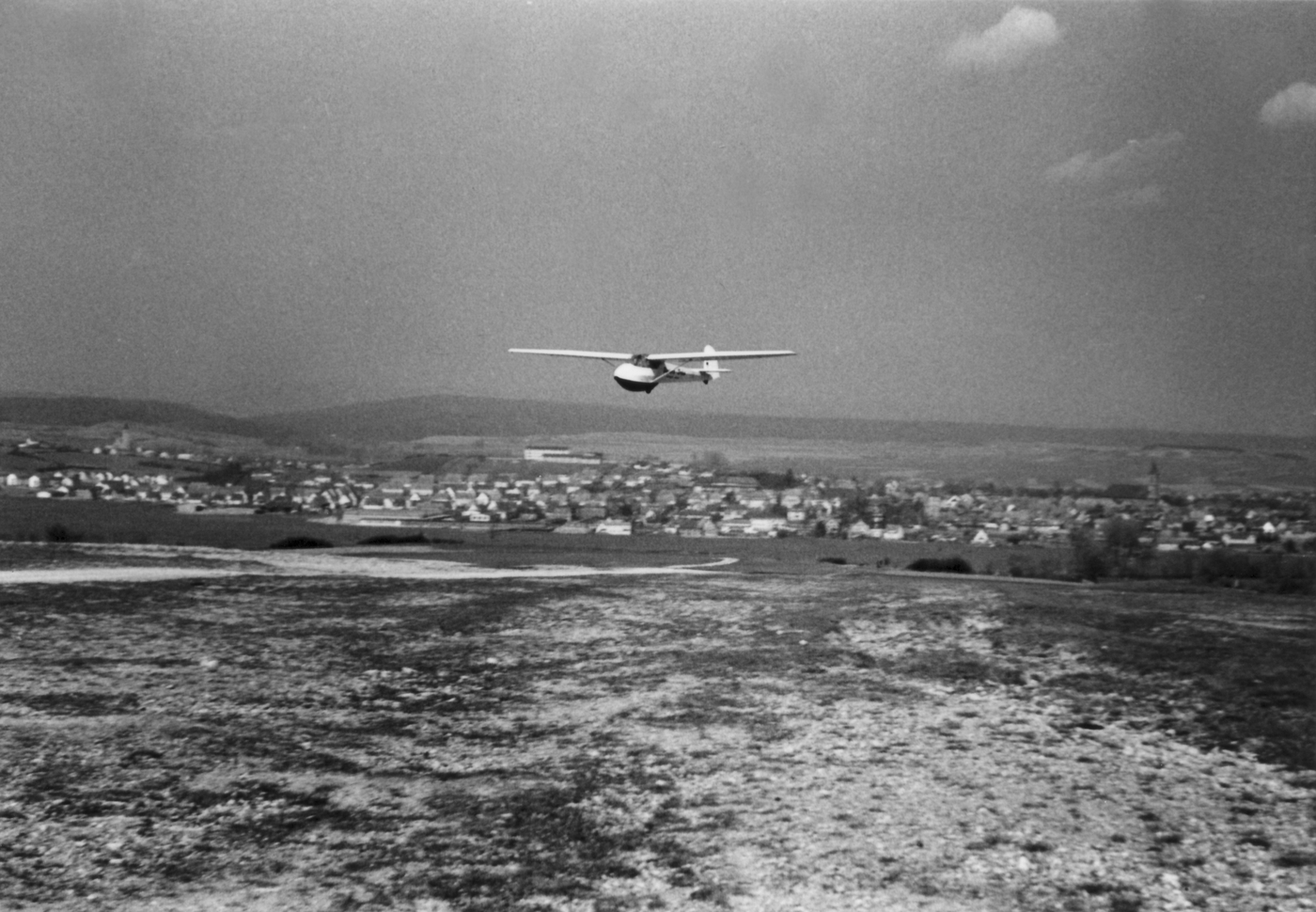 Rhönlerche im Endanflug auf den Grasberg, keine Häuser, keine Piste, Bild aus den 60ziger Jahren