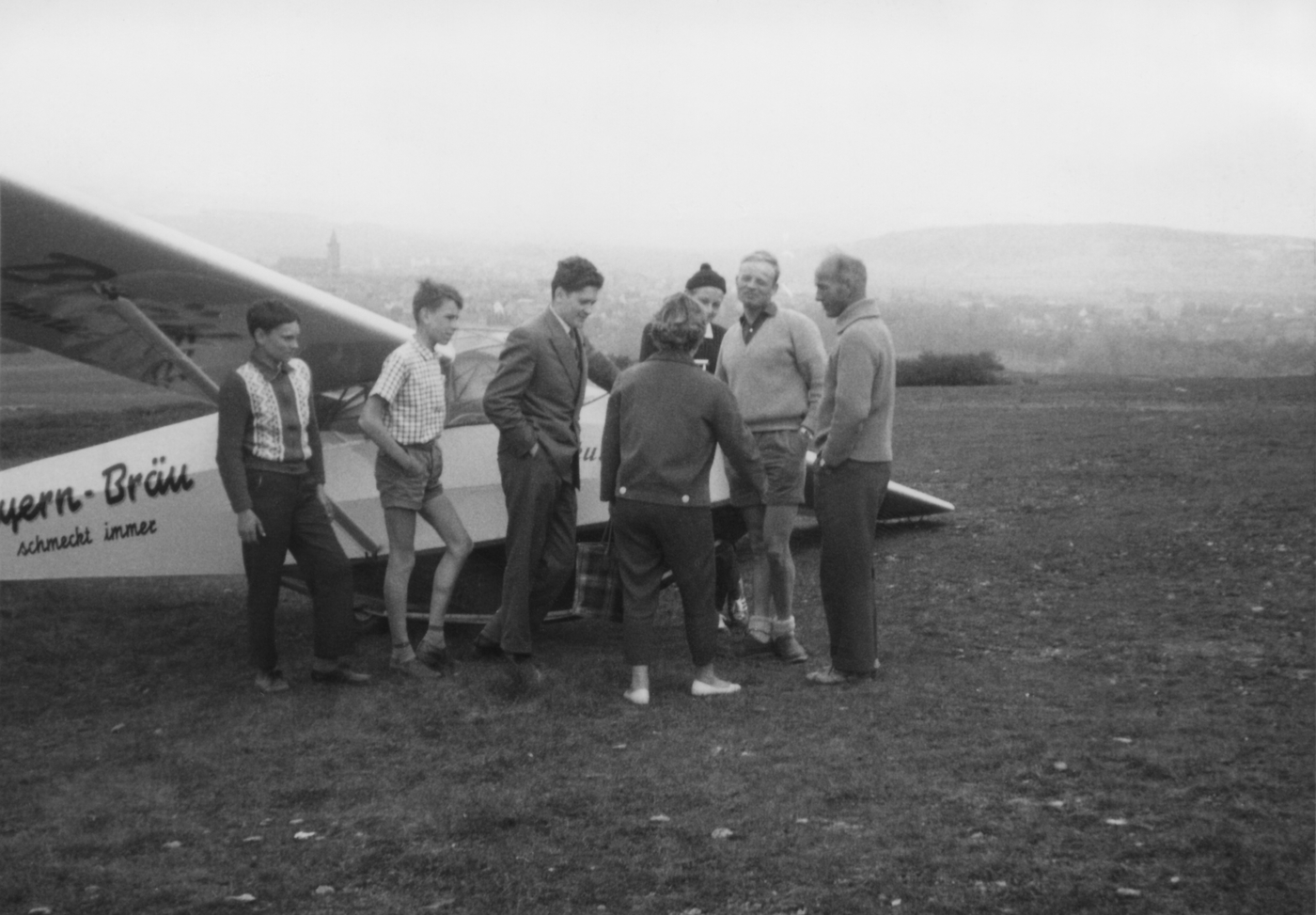 Flieger mit Rhönlerche auf dem Grasberg bei Bad Neustadt, ganz rechts ist Wilbur Mann zus sehen
