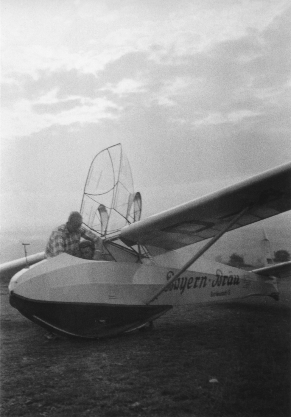 Rhönlerche auf dem Grasberg, Unterstützung des Piloten bei der Startvorbereitung, Aufnahme aus den 60ziger Jahren
