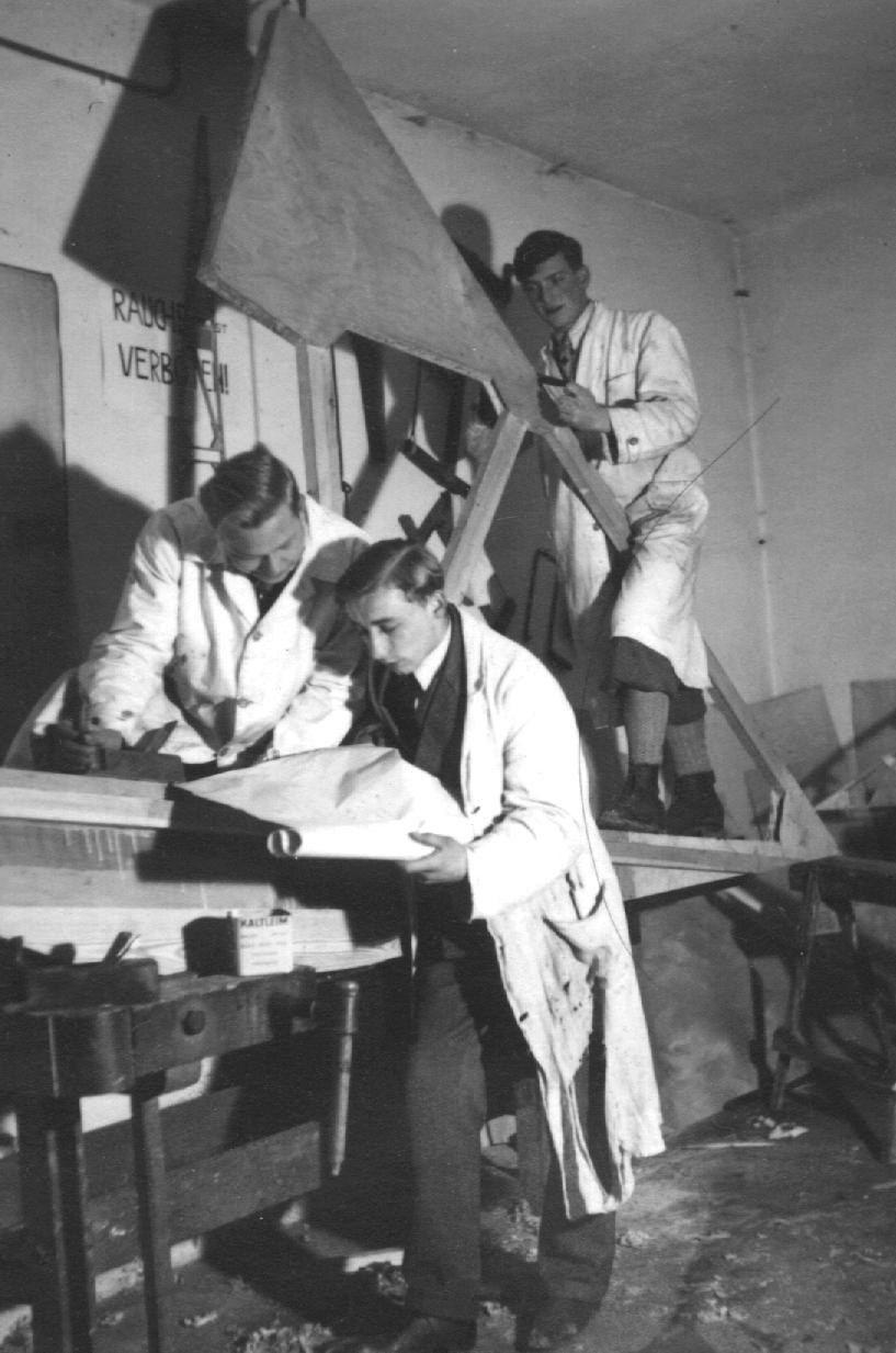 Einweisung der Jugendlichen in den Bauplan. Die Firma Preh stellte einen Werkraum zur Verfügung.
