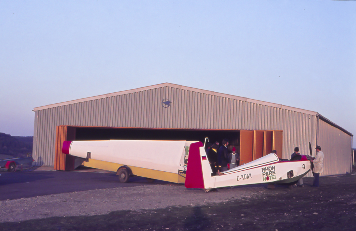 relativ neue Segelflughalle mit SF28 im Jahr 1976 oder 1977